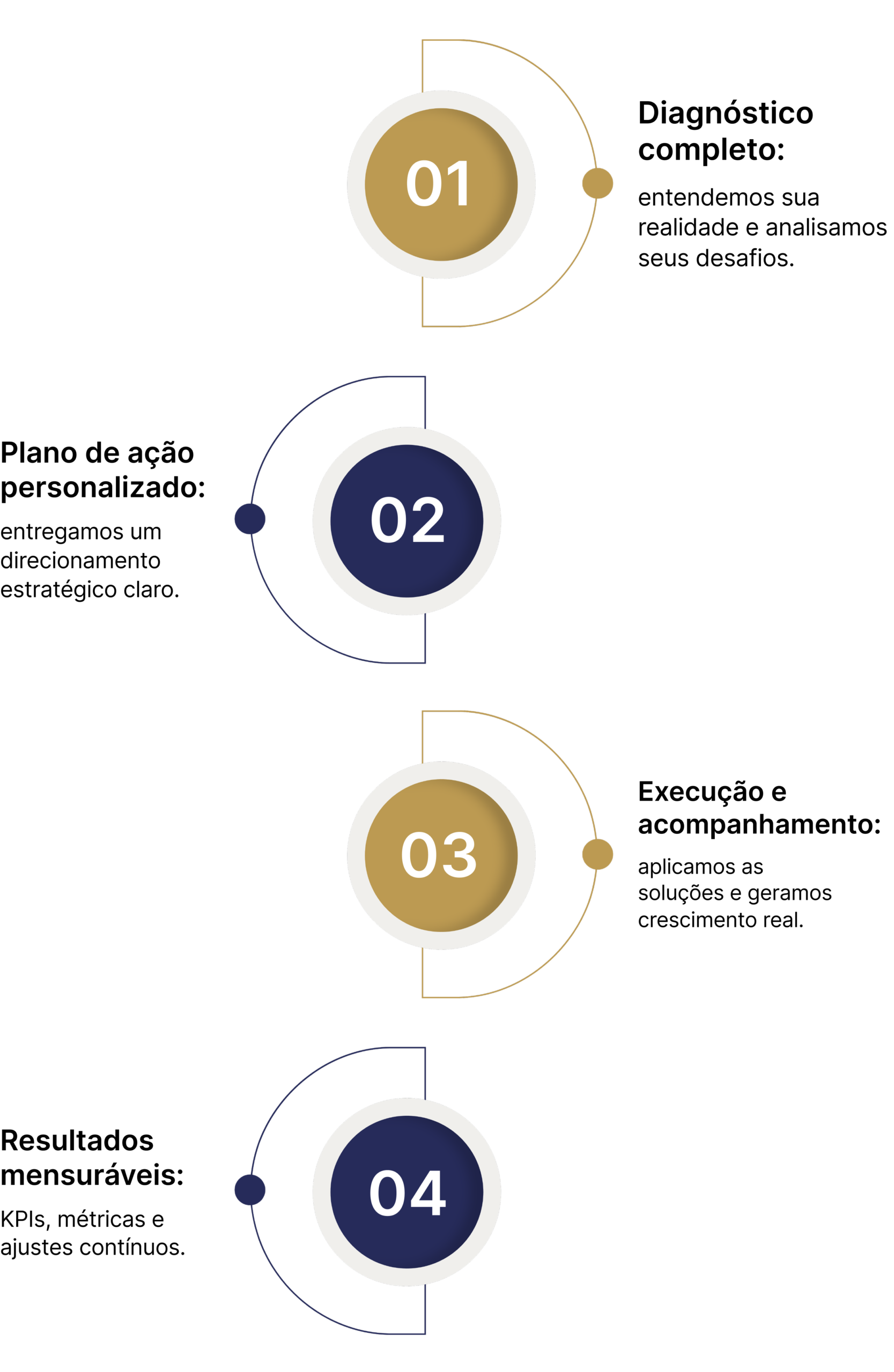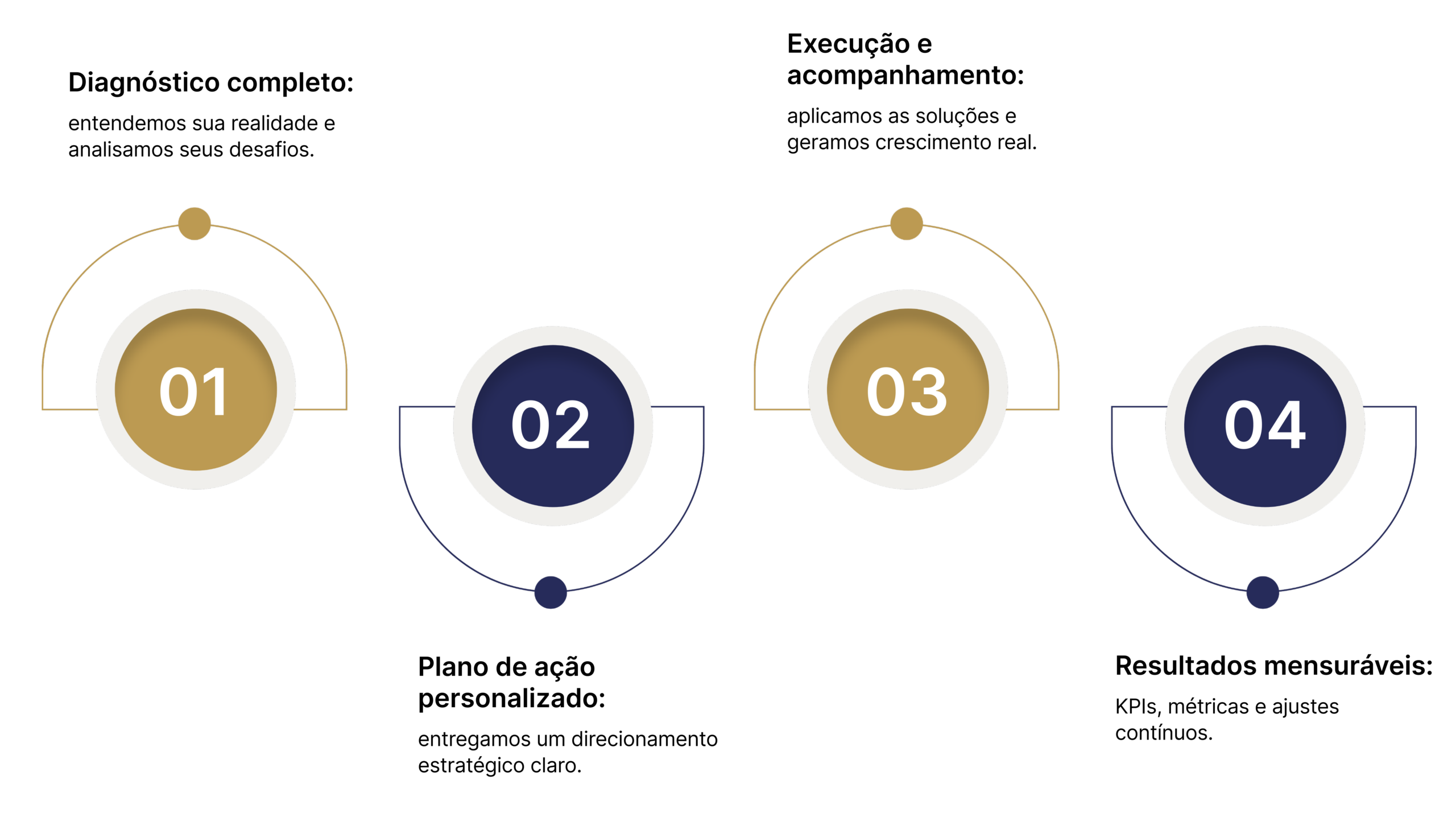 Você sabe exatamente o passo a passo: diagnóstico, plano, execução e acompanhamento. Sem mistério, sem promessas vagas.